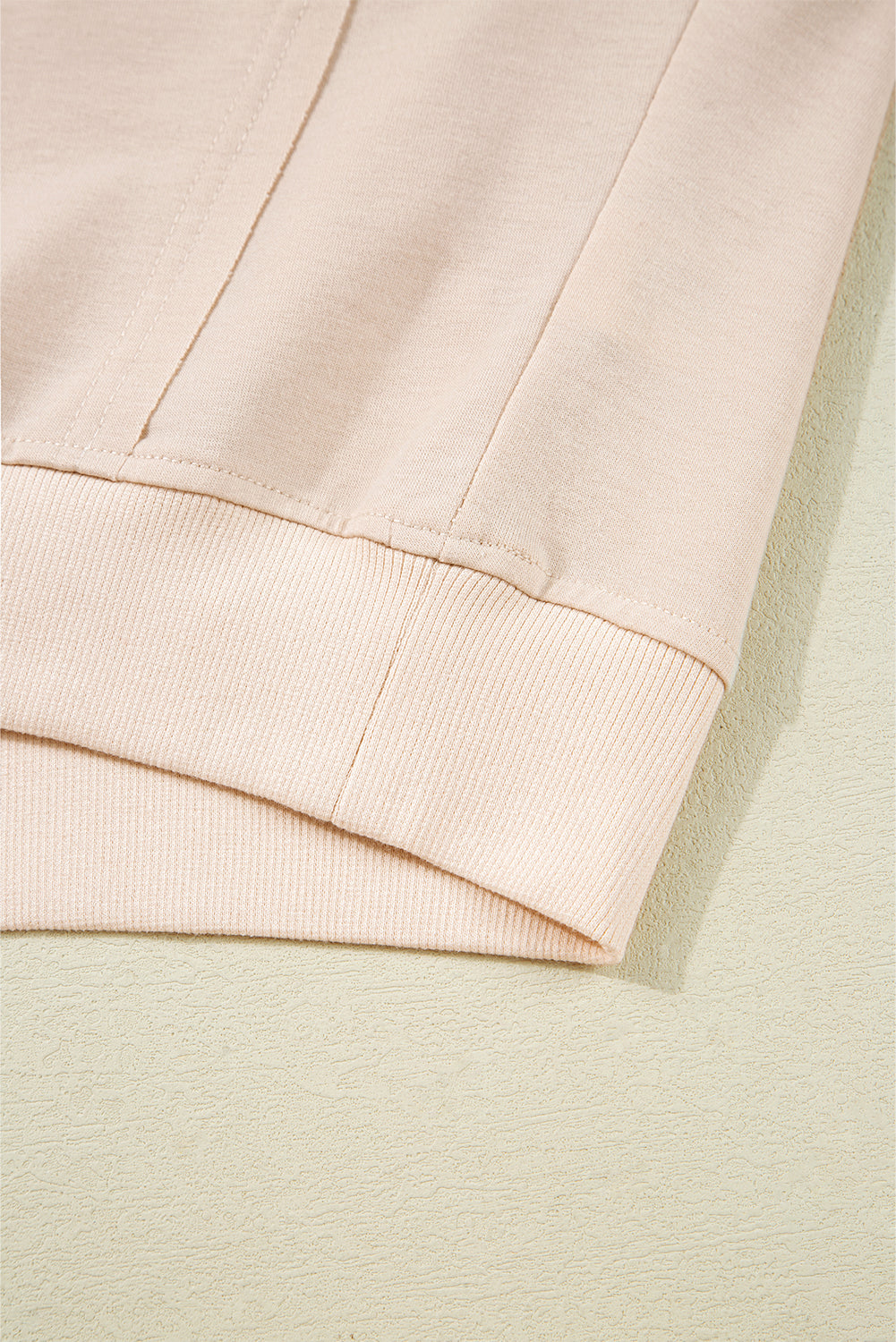 Beige Raw Edge Flower Patch Drop Shoulder Long Sleeve Top