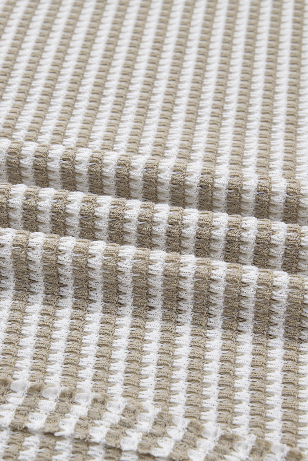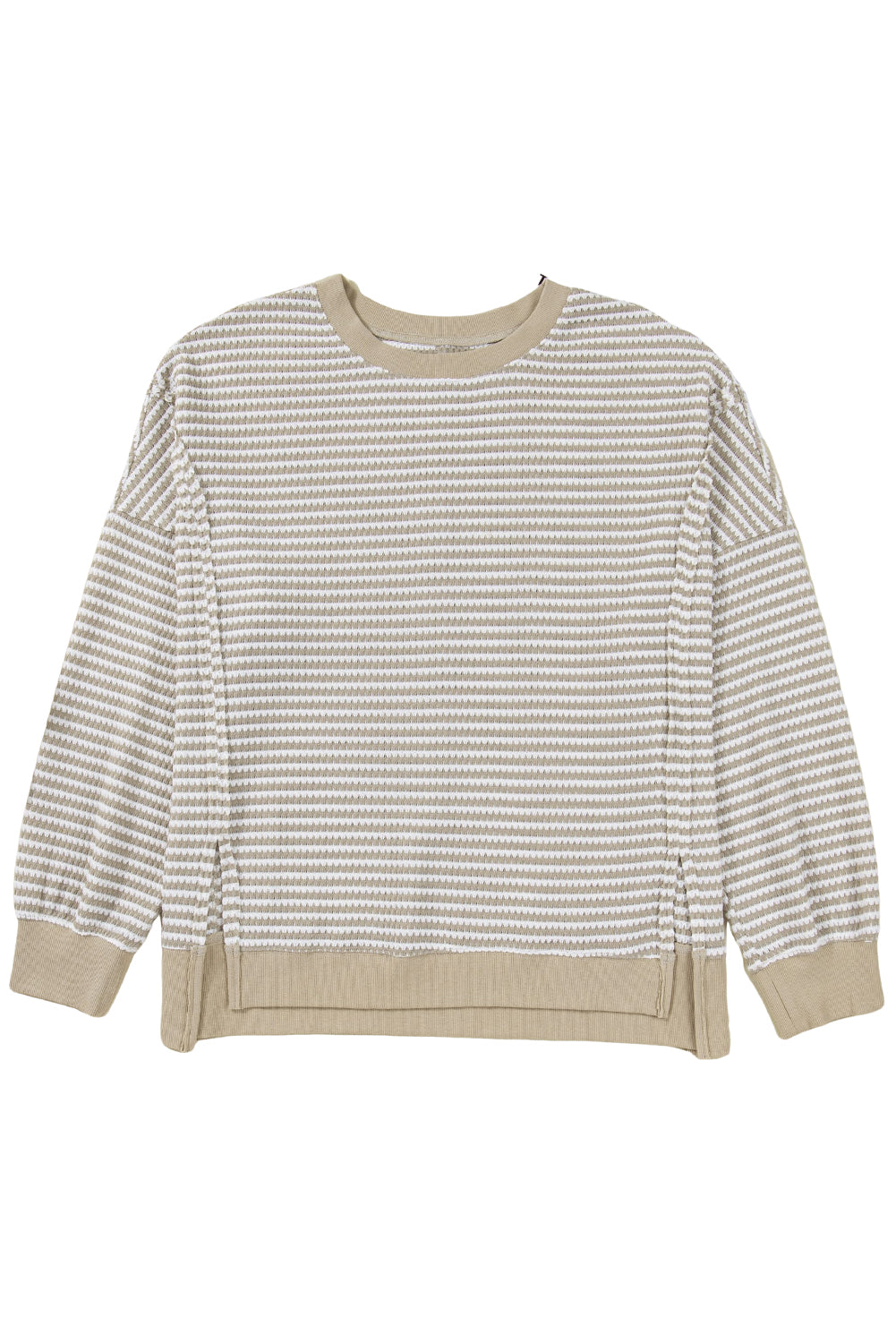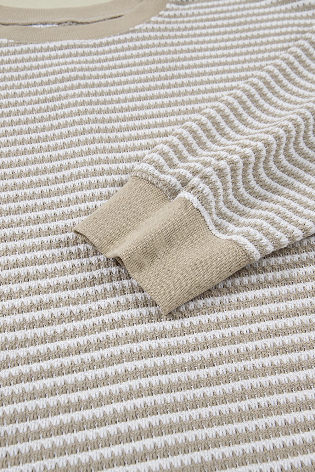 Brown Plus Size Stripe Ribbed Trim Drop Shoulder Long Sleeve Oversized Top
