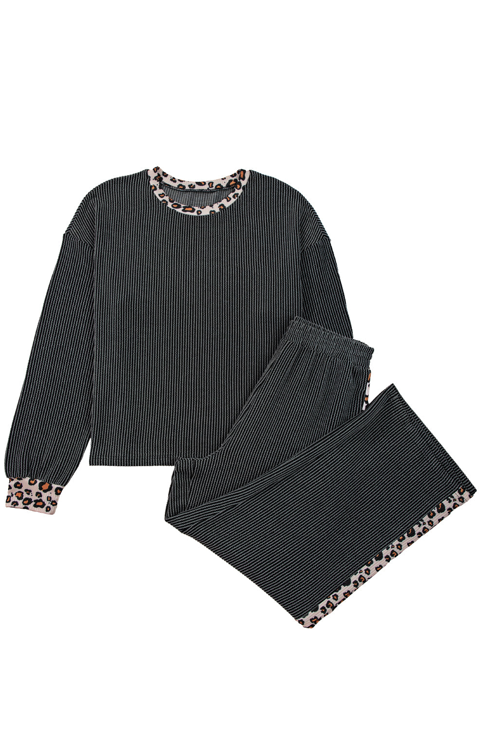 Carbon Grey Twisted Rib Leopard Patchwork Detail 2pcs Pants Set