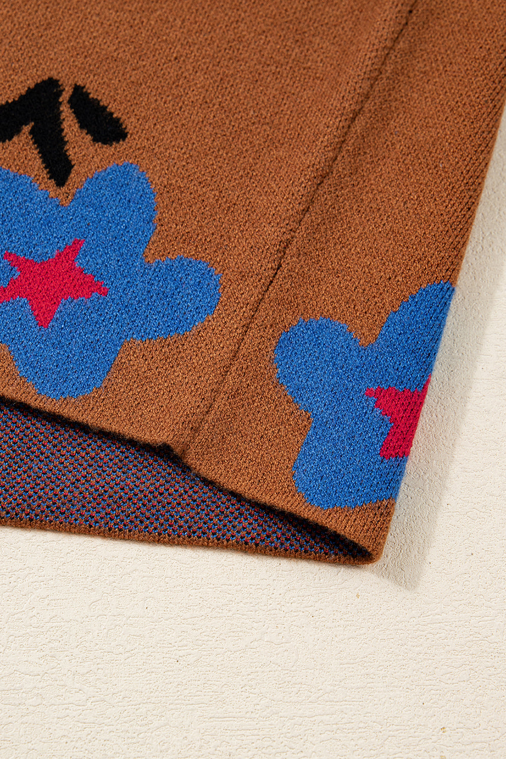 Chestnut Vintage Floral Pattern High Neck Sweater Vest