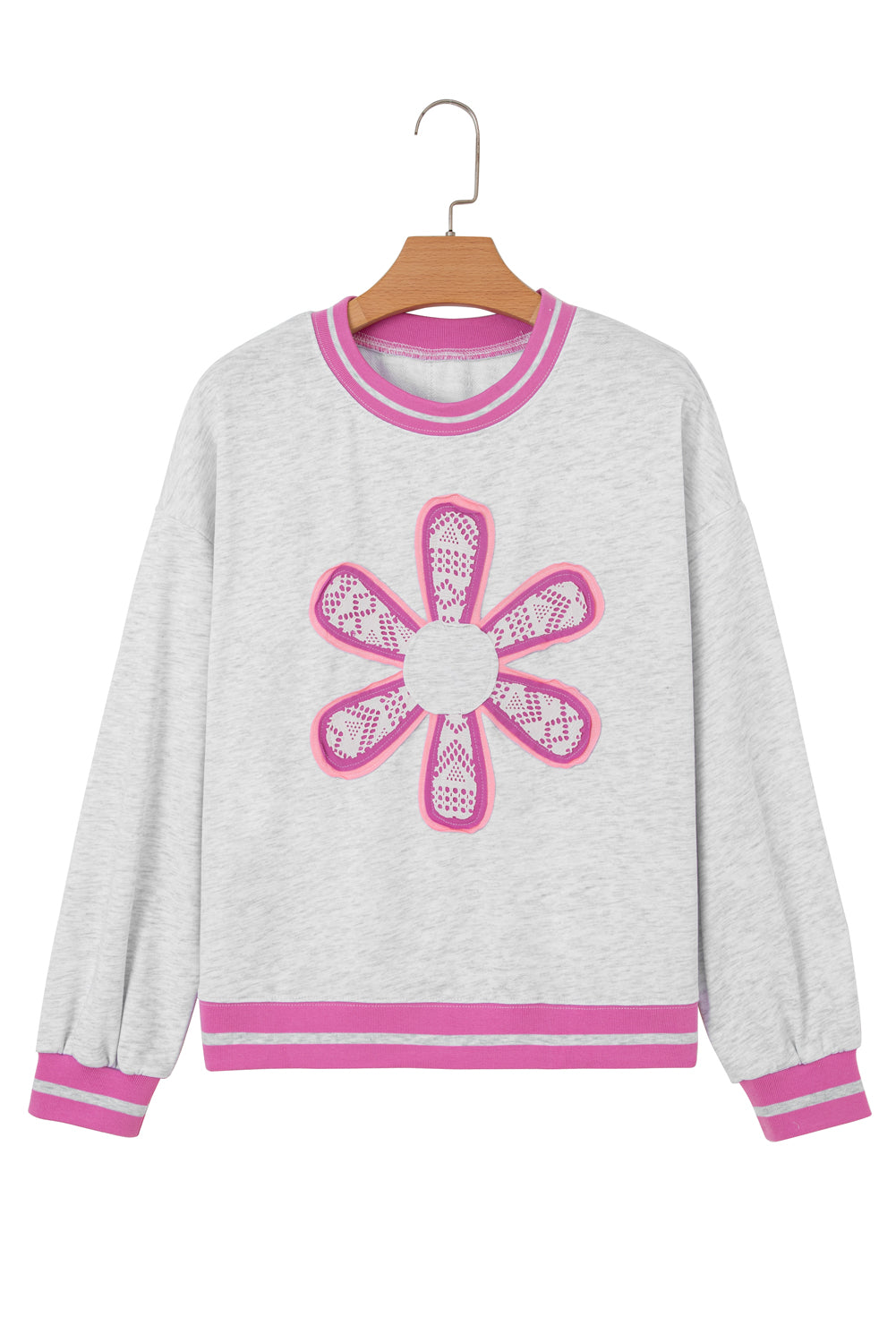 Gray Flower Patch Contrast Trim Crew Neck Sweatshirt