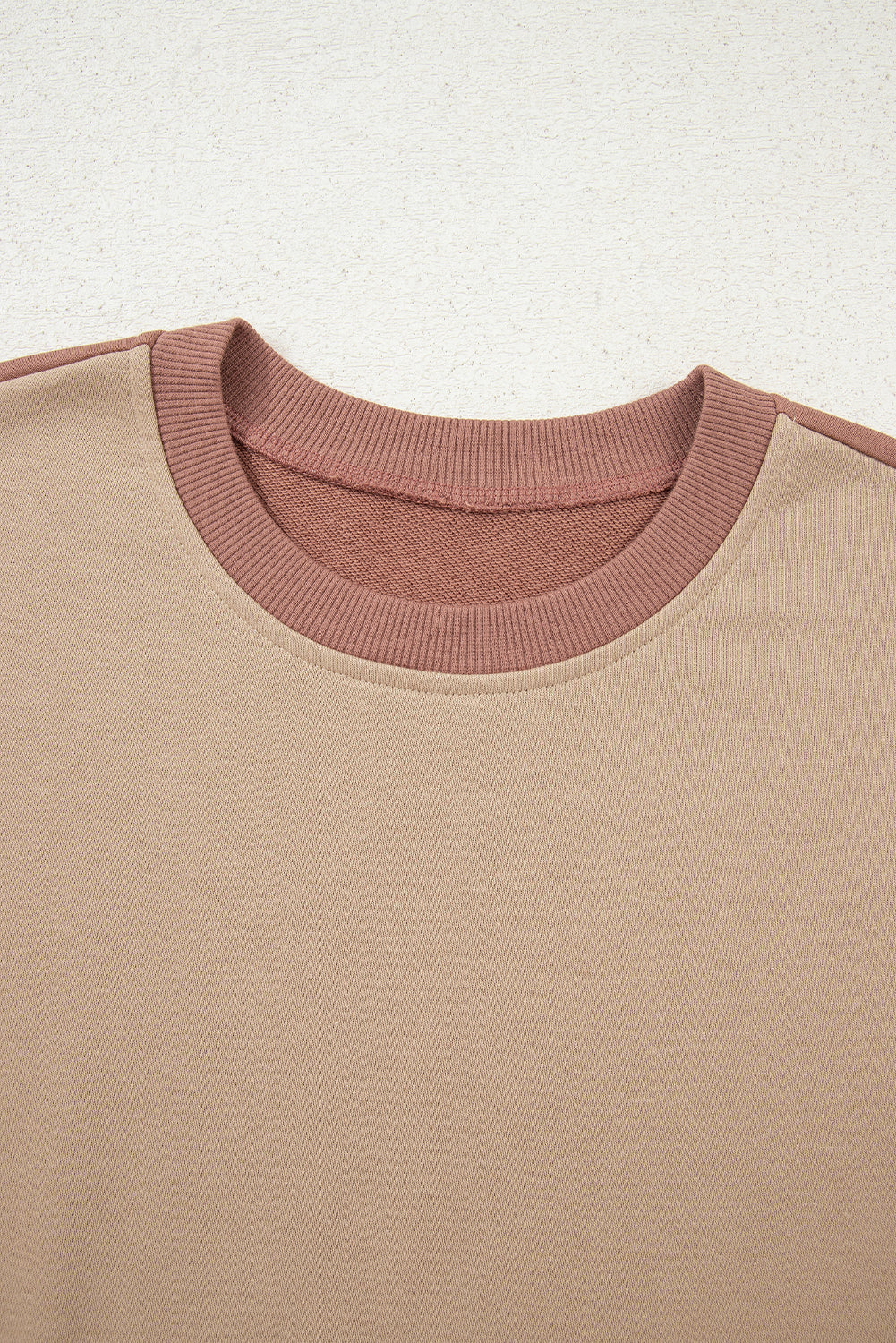 Khaki Color Block Long Sleeve Crop Top Drawstring Pant Set
