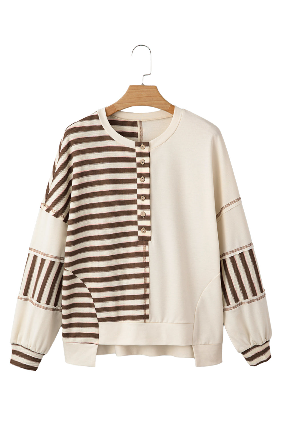 Khaki Striped Patchwork Oversized Pullover Top