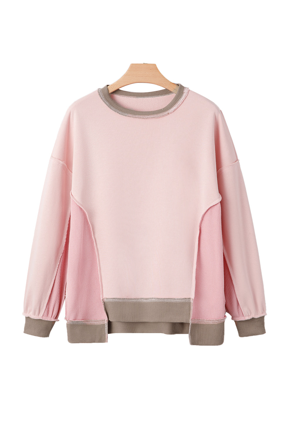 Light Pink Colorblock Waffle Patchwork Oversize Sweatshirt