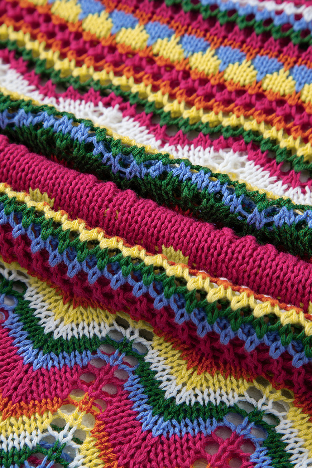 Openwork Contrast Round Neck Flare Sleeve Knit Top