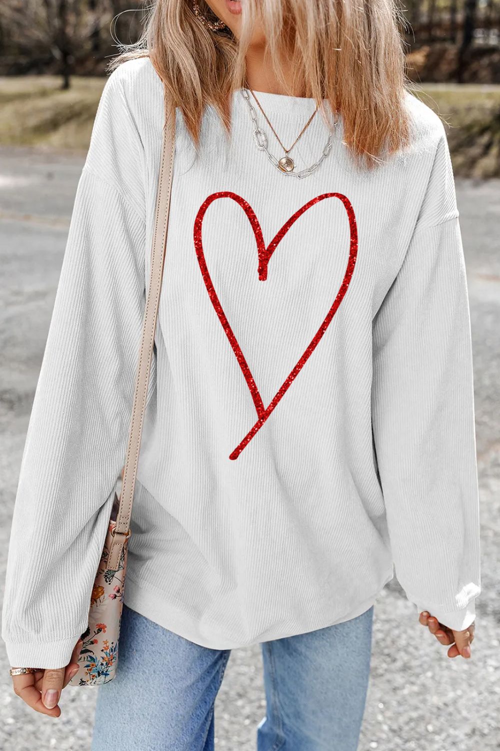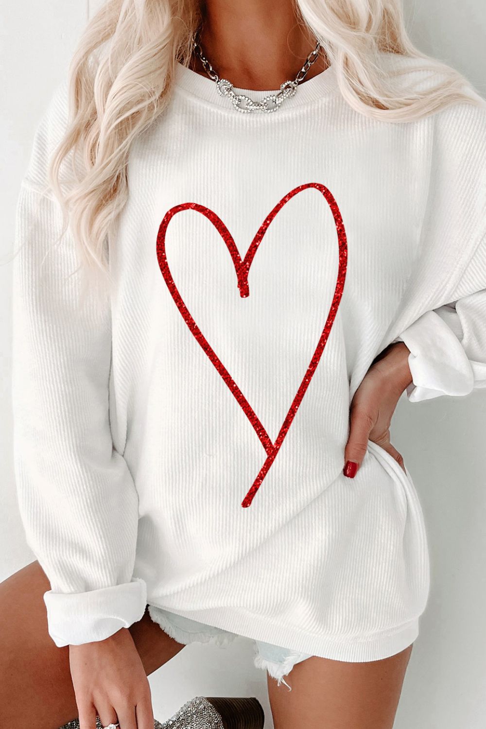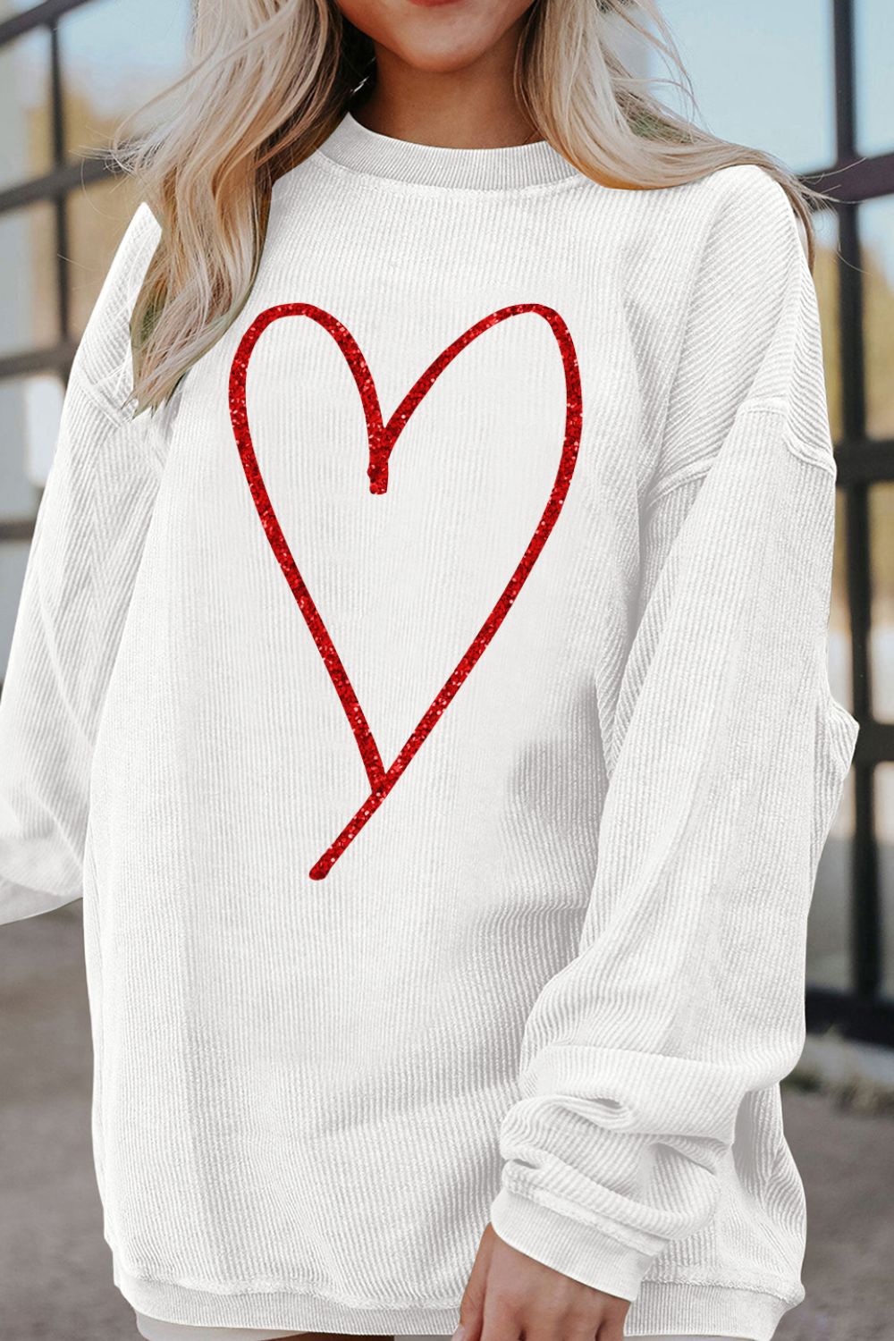 Valentine’s Day Glitter Heart Corded Sweatshirt